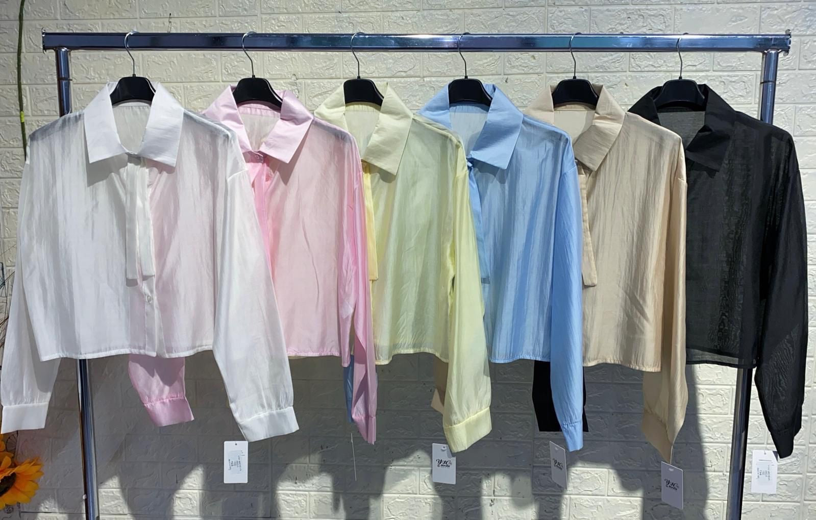 Camicia elegante in cotone trasparente con dettaglio finta cravatta integrato. Il tessuto leggero e traspirante garantisce comfort durante tutto il giorno, perfetto per look sofisticati e versatili. Il design innovativo combina praticità e stile, ideale per chi desidera un capo che faccia una dichiarazione di moda senza compromessi sulla comodità. Un'aggiunta essenziale al guardaroba di chi apprezza i dettagli ricercati.