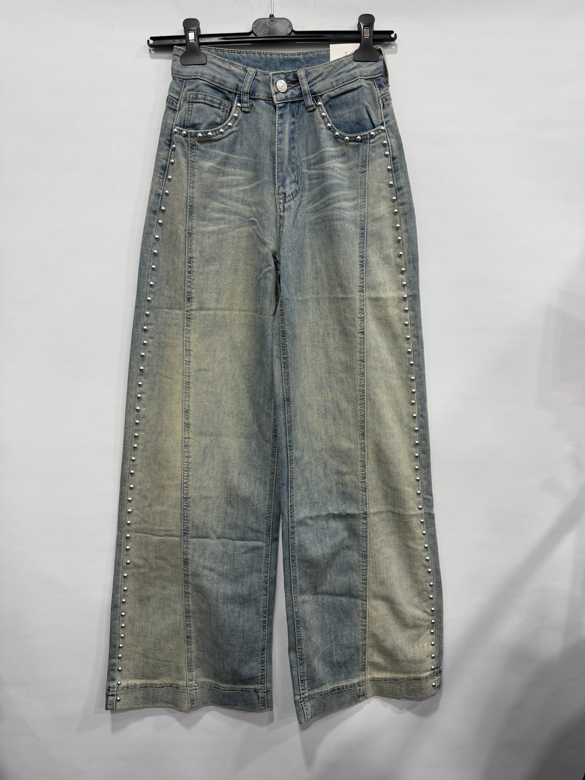 JEANS A PALAZZO CON BORCHIE NEI LATI E TASCHE ART.Z6361
