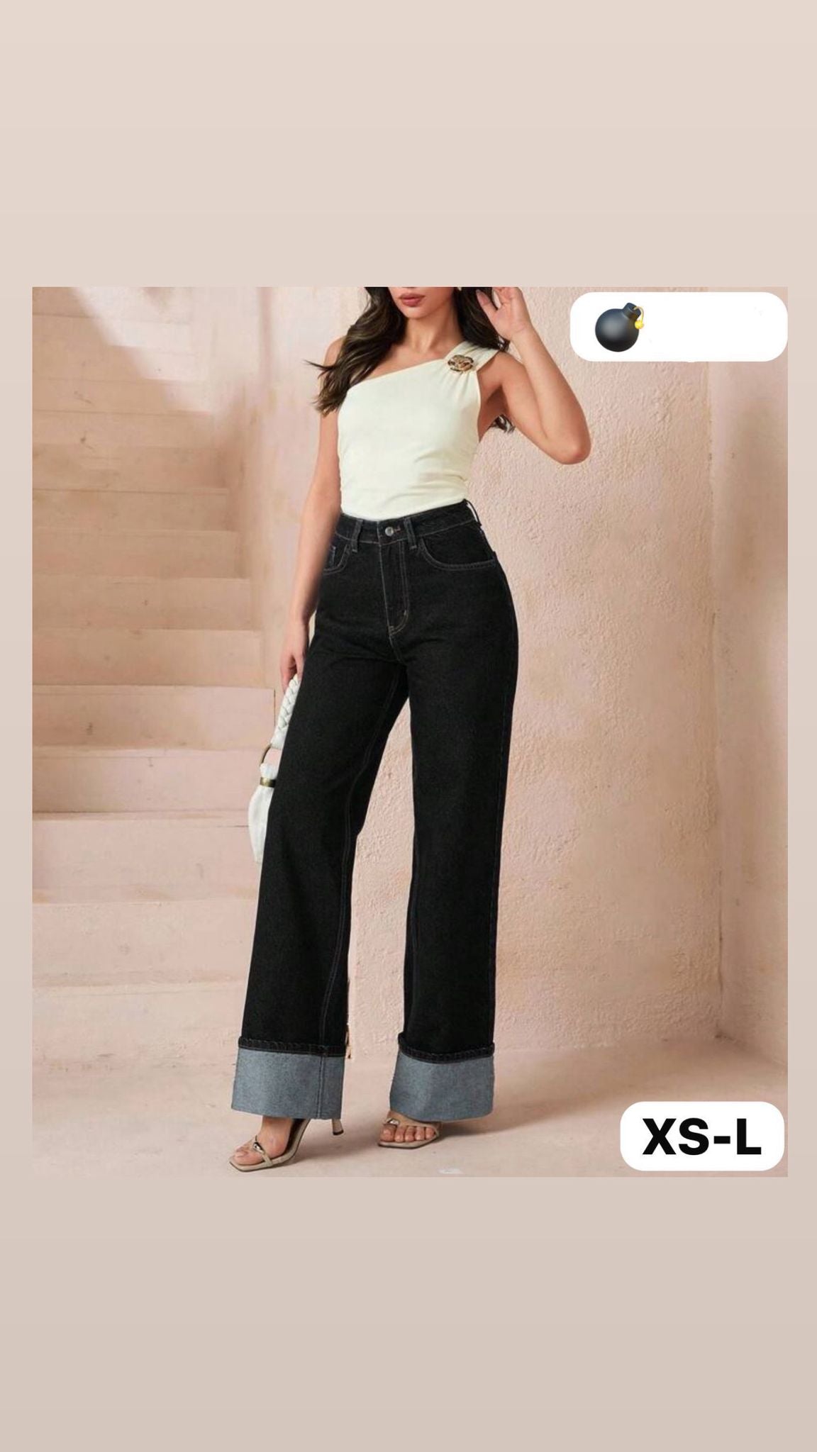 JEANS A PALAZZO NERO CON PIEGONE