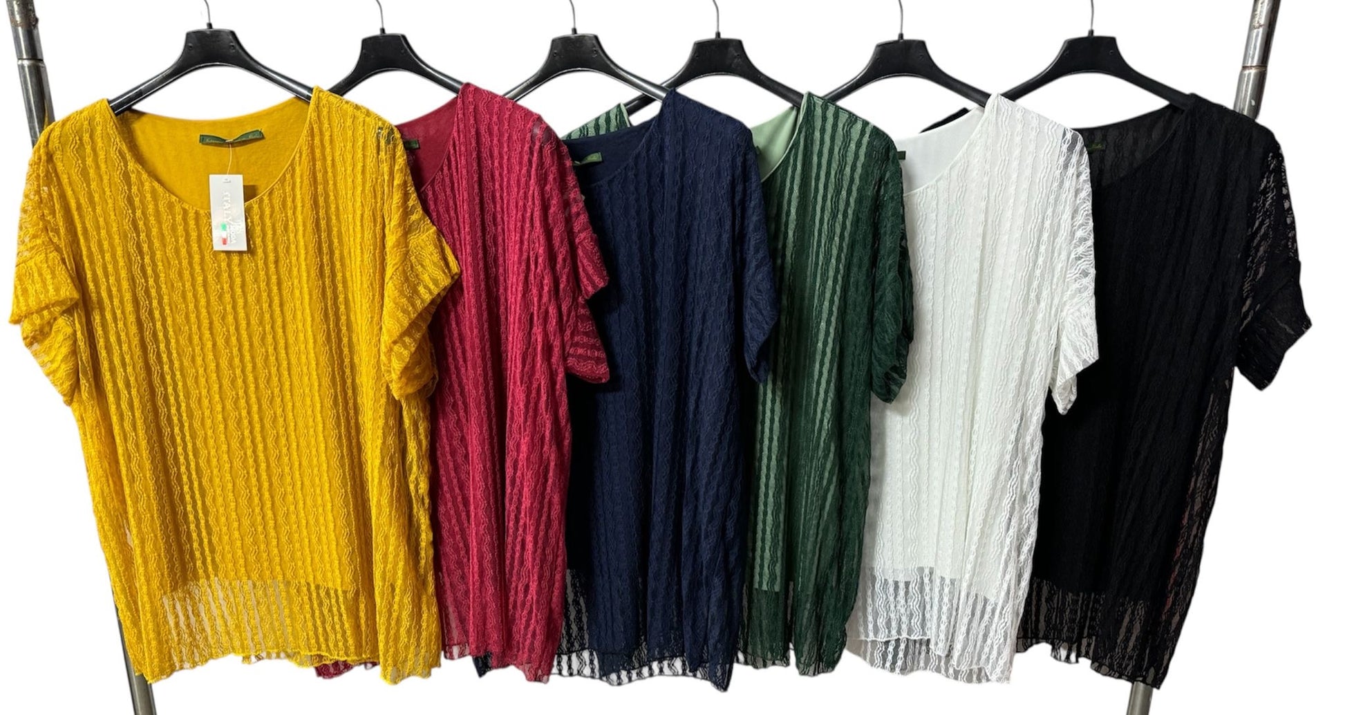 Maglia curvy elegante realizzata in pizzo pregiato, perfetta per chi desidera un capo sofisticato e femminile. La silhouette generosa valorizza le forme, mentre il pizzo delicato crea un effetto raffinato e sensuale. Ideale per occasioni speciali o per chi ama indossare capi che esaltano la propria bellezza con stile e comfort.